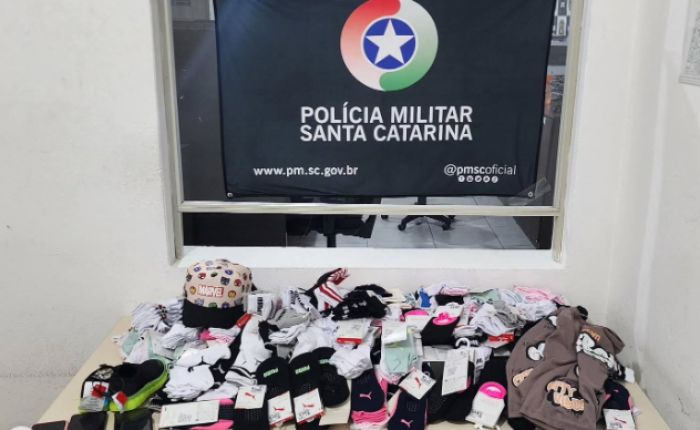 Dentro do carro estavam dois homens e duas mulheres. No porta-malas, os policiais encontraram bolsas, sapatilhas, tênis, meias e roupas — mercadorias avaliadas em R$ 5.705,00.