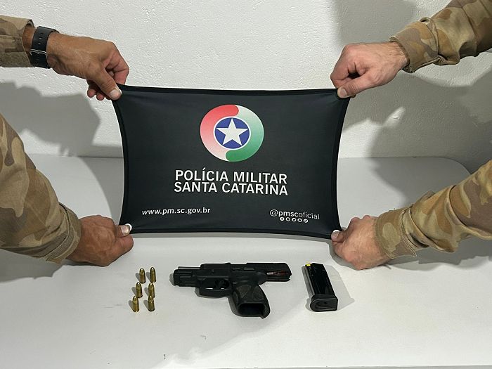 Uma pistola Taurus calibre 9mm com seis munições intactas foi apreendida pela Polícia Militar de Garopaba na noite deste domingo, 15, durante abordagem a um homem de 44 anos que dirigia uma caminhonete branca na Praia do Ouvidor. O condutor alegou ter autorização para porte de arma, mas não apresentou documentos que comprovassem a regularidade, caracterizando porte ilegal.
