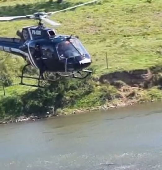 As equipes realizam buscas pelo rio com o apoio aéreo do helicóptero da Polícia Civil, que auxilia na varredura da área. Até o momento, o homem não foi localizado.