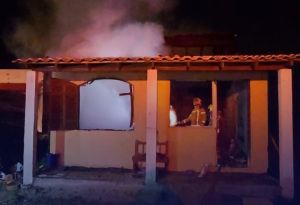Enquanto isso, no endereço da ocorrência, os policiais foram informados de que o autor havia colocado fogo na residência do casal. Os Bombeiros Voluntários de Jaguaruna já haviam controlado as chamas quando a equipe chegou, mas o imóvel de alvenaria foi completamente destruído.