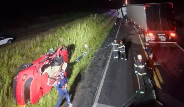 A vítima do acidente entre carro e caminhão ficou encarcerada no SUV, e já estava morta quando o CBMSC chegou ao local do acidente, por volta das 2h17. O motorista do caminhão não sofreu ferimentos.
