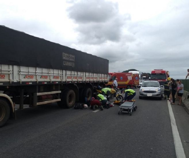 A batida envolveu um caminhão Scania, um automóvel e uma motocicleta. O motorista do caminhão, com placas de Lages, de 36 anos, não sofreu ferimentos, somente danos materiais, assim como o condutor de um Ford KA, de 45 anos.