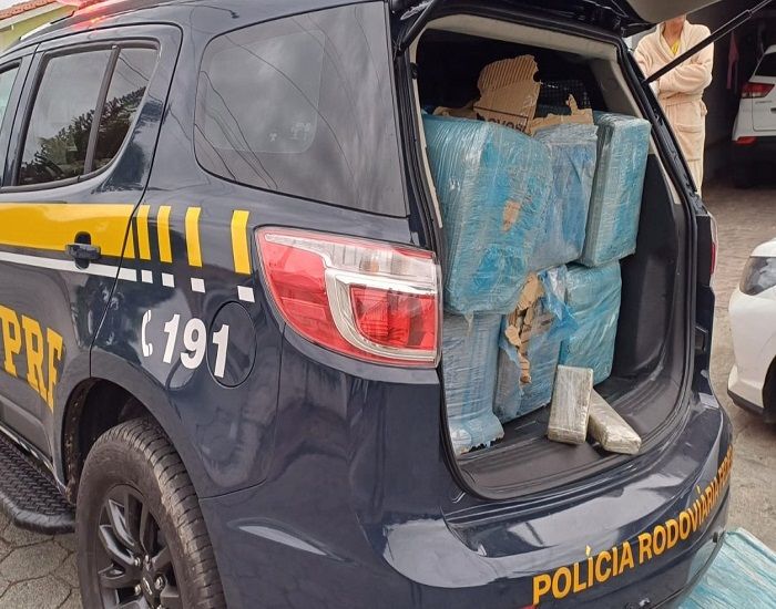 Dentro do veículo, diversas caixas com fardos de maconha ocupavam todo o porta-malas, banco traseiro e banco do passageiro, totalizando 319,7 quilos do entorpecente.