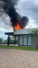 Um incêndio atingiu uma residência na tarde desta sexta-feira (20), por volta das 15h11, na Rua Dorzinho Sachetti, em São Ludgero.