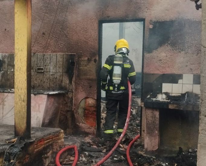 Bombeiros controlaram rapidamente as chamas que iniciaram em uma churrasqueira e protegeram imóvel e vegetação vizinha