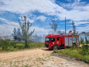 Um incêndio em área de vegetação mobilizou os Bombeiros Voluntários de Jaguaruna na manhã deste sábado (27). A ocorrência foi registrada por volta das 10h30, na Rua Pardal, no bairro Dunas do Sul.