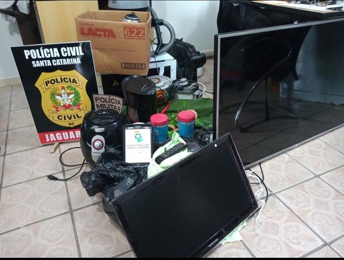 Em ação conjunta com a Polícia Civil, no local indicado pela detida, diversos objetos de procedência duvidosa foram apreendidos, como eletrodomésticos, roupas, bicicletas, aparelhos de televisão, entre outros.