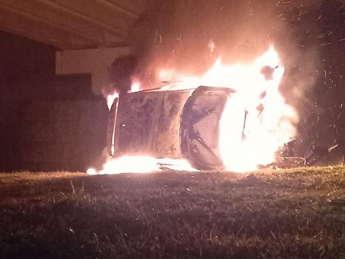 Um VW Fox foi totalmente destruído por um incêndio no início da madrugada deste domingo (20) em Criciúma. O acidente ocorreu na Rodovia Antônio Darós, no bairro São João.