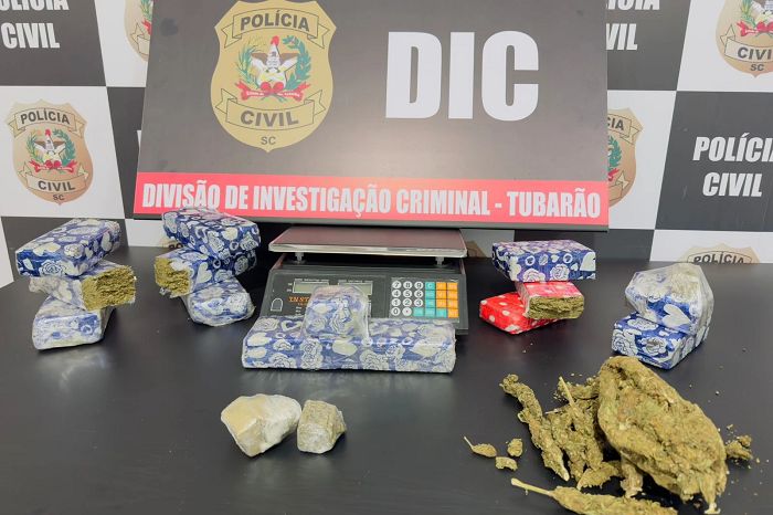 Um homem de 21 anos foi preso em flagrante nesta quinta-feira (21) em Tubarão, durante uma operação da Delegacia de Investigação Criminal (DIC). Com ele, a Polícia Civil apreendeu cerca de 4,5 quilos de maconha, 240 gramas de skank, dinheiro, uma balança de precisão e o veículo usado no tráfico.