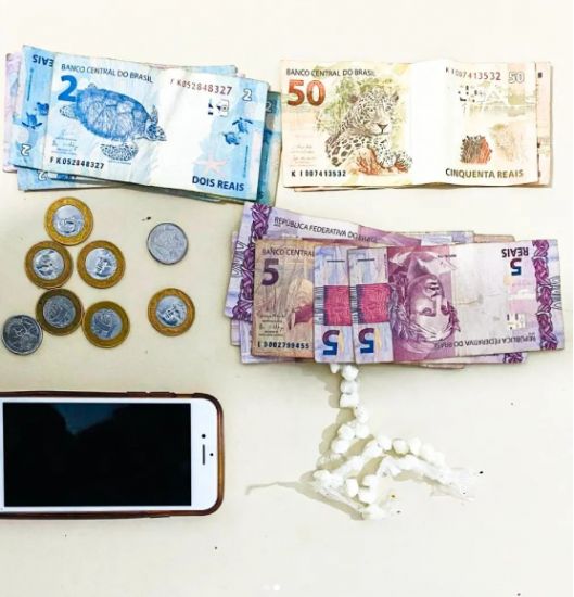 Ao chegarem ao local, os policiais abordaram o suspeito e encontraram com ele 24 pedras de crack (7,3 gramas), 229 reais em dinheiro e um smartphone.