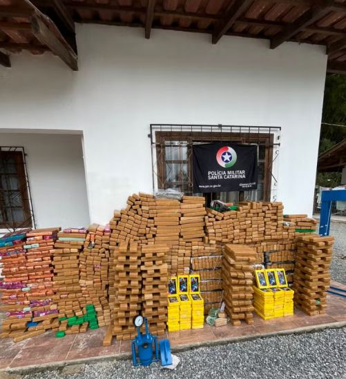 Em uma operação da Polícia Militar, mais de 800 quilos de maconha e 50 quilos de cocaína foram apreendidos na tarde desta terça-feira (7) em uma casa localizada no bairro Pedra de Amolar, na Zona Rural de Ilhota, no Vale do Itajaí, Santa Catarina. Três homens, com idades de 21, 24 e 31 anos, foram presos durante a ação, e uma pistola também foi apreendida.