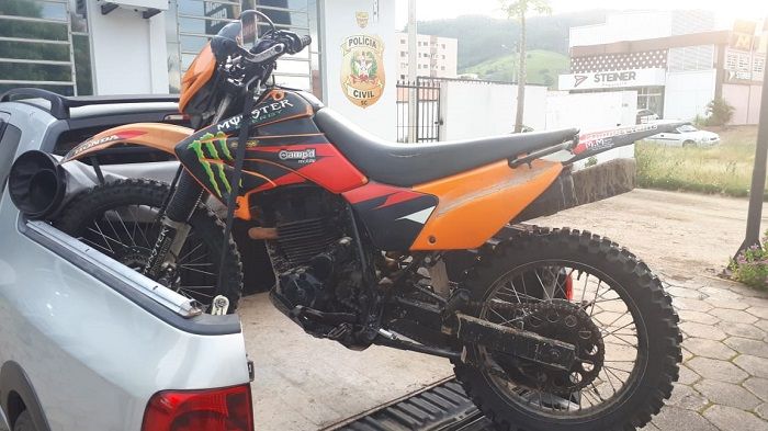 A Polícia Civil descobriu que a motocicleta estaria na cidade de São Martinho. Policiais do município e de Armazém foram ao local (não informado) e a encontraram.