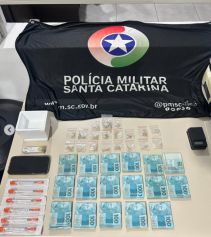 Ao todo, foram apreendidos 20,62 gramas de "MD", uma ampola de tirzepatida, sete seringas, o valor de R$ 17.650,00 em notas fracionadas, uma balança de precisão, um iPhone 14 e a motocicleta utilizada na atividade ilícita.
