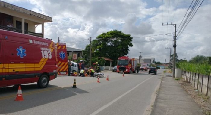 Foi uma colisão entre um GM Corsa, com placas de Lauro Muller, e uma Honda Bros, de Tubarão. O condutor da motocicleta tinha suspeita de fratura no pé direito.