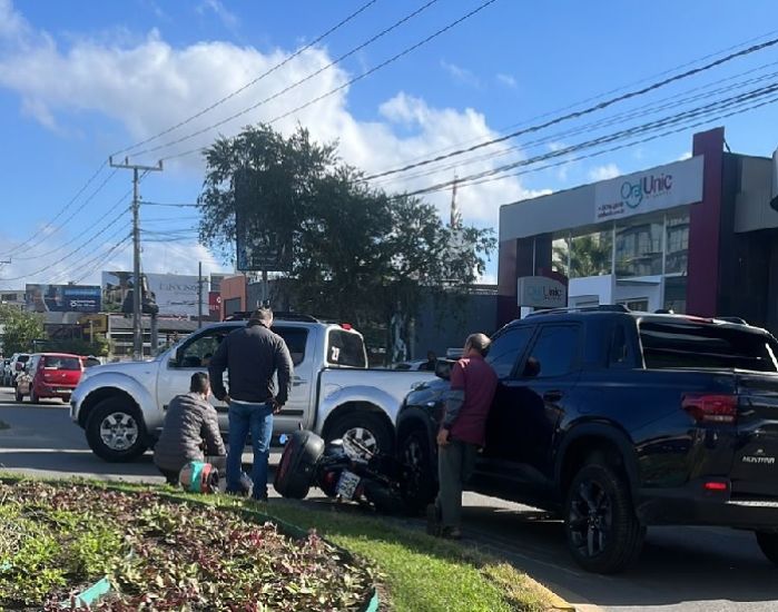 Um acidente de trânsito envolvendo um carro e uma motocicleta foi registrado na tarde desta terça-feira (10) na rótula da ponte Paulo Osny May, em Tubarão. O motociclista ficou ferido, mas sem gravidade.