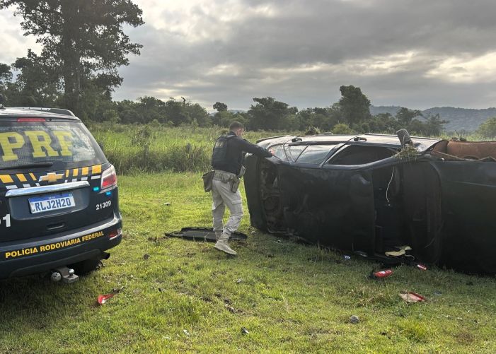 Durante a fuga, o condutor realizou ultrapassagens pelo acostamento e diversas manobras perigosas, até perder o controle da direção e capotar o carro. Mesmo com o acidente, o homem tentou fugir a pé, mas foi alcançado e detido pelos agentes.