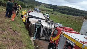 Um acidente grave deixou um motorista de caminhão morto após o veículo que ele conduzia sair da pista e tombar na BR-153, na tarde de quarta-feira (10), por volta das 13h27, no km 09 da rodovia, em Água Doce, no Oeste de Santa Catarina. A Scania R420, carregada com conjuntos de ar-condicionado, tombou às margens da estrada, segundo o Corpo de Bombeiros Militar (CBMSC).