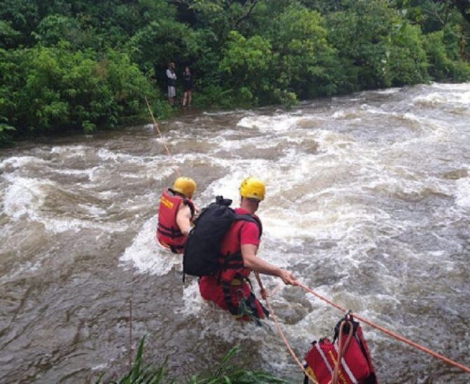 Eles faziam uma trilha e não conseguiram voltar, pois o rio estava cheio por causa da chuva e com forte correnteza