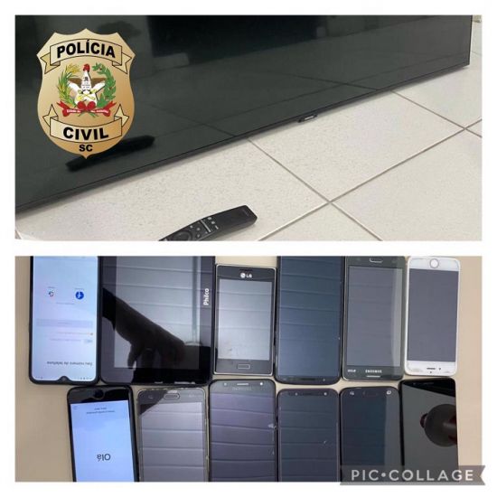 Os policiais apreenderam o televisor e cerca de 12 aparelhos de celular furtados. O suspeito foi autuado em flagrante pela prática do crime de receptação dolosa.
