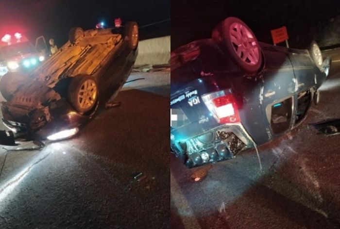 Quando a guarnição chegou ao local não encontrou os ocupantes de um Palio, com placas de Gravatal, que estava capotado com as rodas para cima.