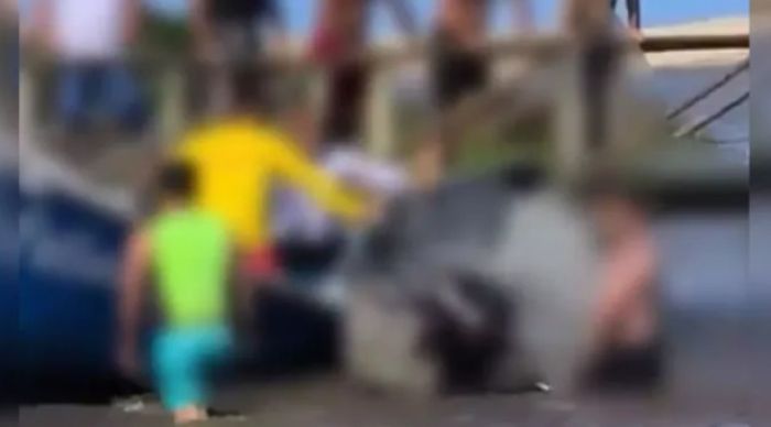 Após o resgate, o homem tentou retornar à embarcação, mas foi impedido por populares. Revoltado, ele ameaçou buscar uma arma no carro, o que intensificou a tensão no local.