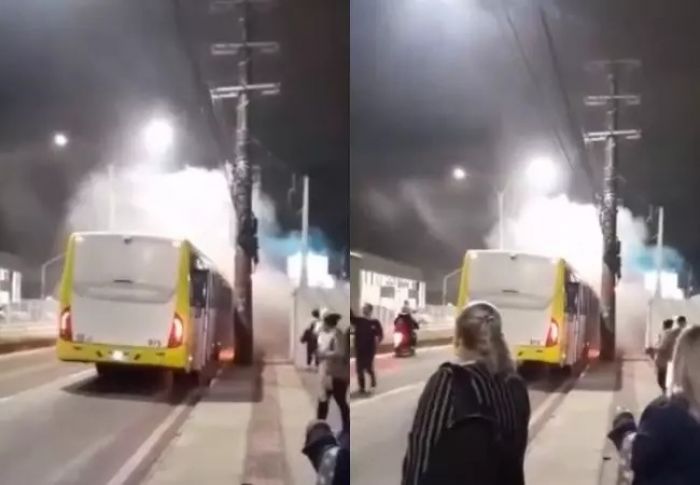 Ônibus pega fogo em Itajaí e passageiros são evacuados