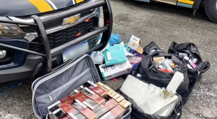 No mesmo ônibus, outros dois passageiros foram flagrados transportando mercadorias contrabandeadas do Paraguai. Um deles carregava 290 unidades de cigarros eletrônicos escondidos em embalagens para tentar despistar a fiscalização, enquanto o outro levava 1,5 mil maços de cigarros comuns de origem estrangeira.