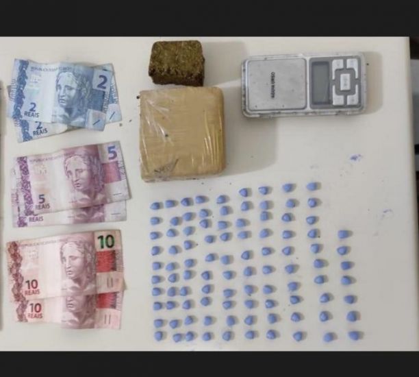 Na casa, os policiais militares encontraram mais entorpecentes - 47 comprimidos de ecstasy, 250 gramas de maconha e uma balança de precisão.