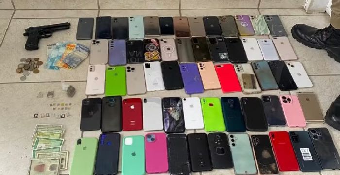 A prisão ocorreu após uma vítima rastrear o celular dela, que havia sido furtado, e informar a localização aos policiais. Os suspeitos estavam em uma casa, onde foram encontrados os aparelhos, além de um simulacro de arma, três carregadores, uma corrente, sete documentos de identidade e R$ 400 em dinheiro.