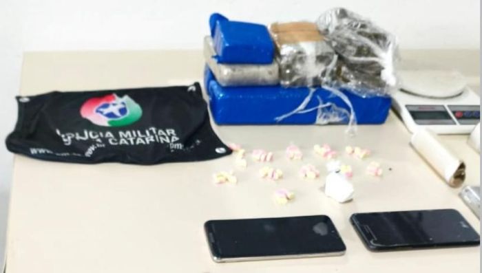No quarto utilizado pelo suspeito, foram apreendidos aproximadamente 2,6 quilos de maconha, 55 comprimidos de ecstasy e 15,9 gramas de cocaína. Também foram encontrados duas balanças de precisão, materiais utilizados para embalar os entorpecentes e dois aparelhos celulares.