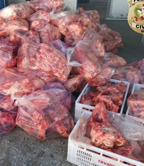 Na operação de fiscalização, foram apreendidos 3 toneladas de carne suína. Após o flagrante, elas foram inutilizadas.