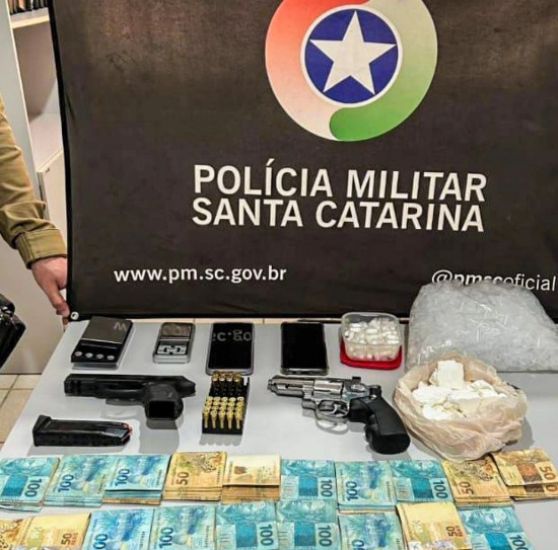 Uma operação conjunta entre os policiais do 5⁰ Batalhão de Polícia Militar (BPM) de Tubarão e Treze de Maio resultou, nesta quinta-feira (15), na apreensão de uma pistola calibre .40, que havia sido desviada da Polícia Militar do Paraná, além de 390 gramas de cocaína, R$ 18.000,00 em dinheiro, duas balanças de precisão e um simulacro de arma de fogo.