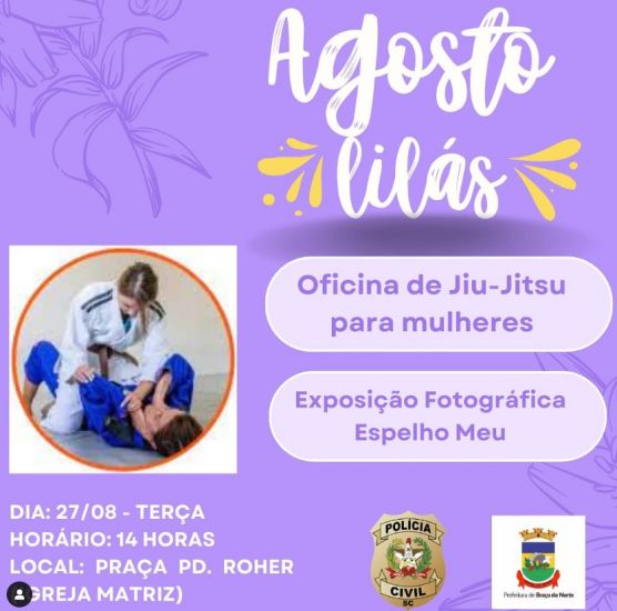A Polícia Civil de Braço do Norte, por meio da DPCO, está organizando um evento especial voltado para as mulheres da região. Na próxima terça-feira, dia 27 de agosto, às 14h, será realizada uma Aula de Defesa Pessoal gratuita, na Praça Padre Roher, em frente à Igreja Matriz.