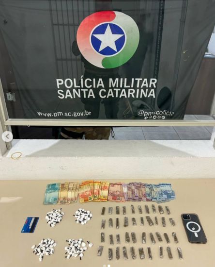 No momento da abordagem, os policiais encontraram com ele 104 porções de cocaína (48,5 gramas), 40 porções de maconha (113,2 gramas) e R$ 1.252 em dinheiro. O homem recebeu voz de prisão e foi encaminhado à Delegacia de Polícia Civil para os procedimentos legais.