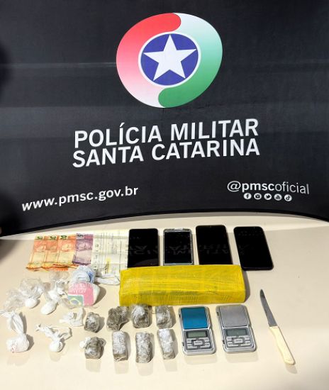 Com base nas informações obtidas no local, os policiais seguiram até a residência do suspeito. No imóvel, foram encontrados 915 gramas de maconha, 85 gramas de cocaína, balanças de precisão, dinheiro e quatro celulares.