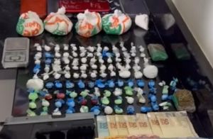 Na sequência, os policiais realizaram buscas na residência, onde localizaram mais drogas já fracionadas, além de materiais utilizados para a comercialização.