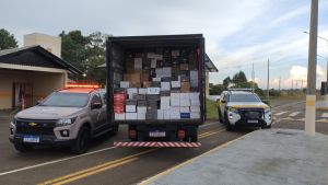 Após contato com a Polícia Federal, foi determinada a apreensão do caminhão e da carga, que serão encaminhados posteriormente à Delegacia da Receita Federal em Joaçaba.
