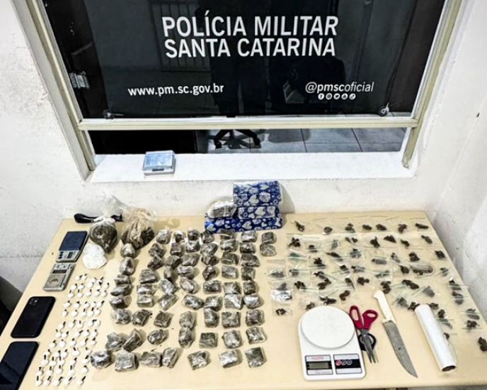 Ao entrar no imóvel, os policiais encontraram diversas embalagens de maconha prontas para venda, além de torrões maiores da substância, balanças de precisão, faca e tesoura. Poucos minutos depois, o irmão de 22 anos chegou ao local e tentou fugir ao ver a presença policial, mas foi detido. Com ele, foram localizadas duas porções de maconha de 25 gramas e duas porções de cocaína.
