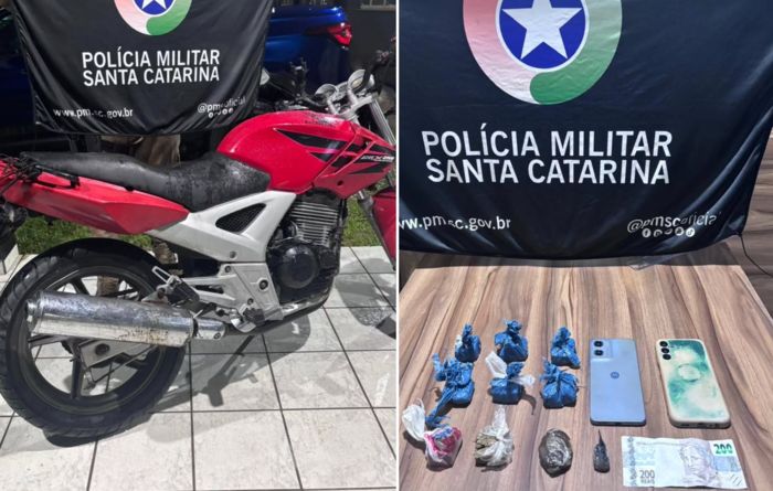 De acordo com a PM, a ocorrência teve início durante patrulhamento de rotina, quando os policiais avistaram um motociclista que tentou fugir ao notar a aproximação da viatura. Ele foi abordado logo em seguida e, com ele, foram encontrados aproximadamente 180 gramas de maconha fracionadas e cerca de 8 gramas de cocaína, o que levantou suspeita de tráfico de drogas.