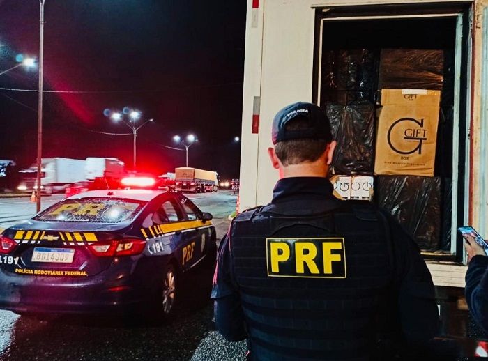 Policiais Rodoviários Federais apreenderam na noite desta quinta-feira (4), na BR-101 em Joinville, 100 mil maços de cigarros contrabandeados do Paraguai. Um homem foi preso.