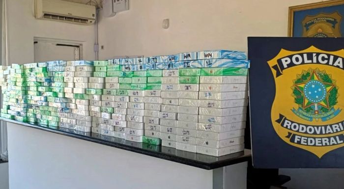 Durante a abordagem, os agentes encontraram 475 smartphones modelo iPhone, além de 11 smartwatches, cinco tablets e 38 relógios de pulso de diferentes marcas escondidos dentro de um carro suspeito.