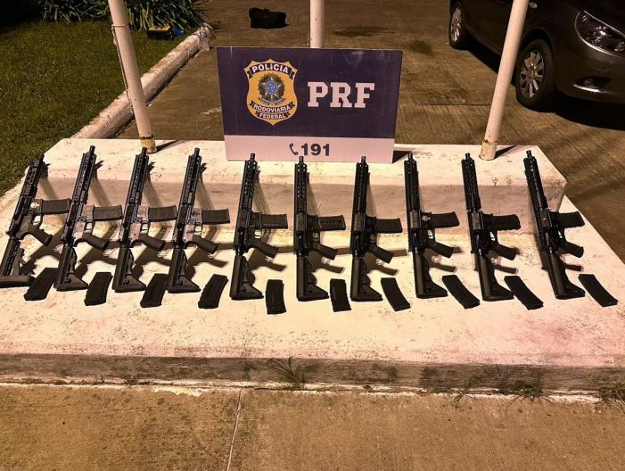 Policiais rodoviários federais apreenderam por volta das 23h desta segunda-feira (26), na BR-280 em Mafra, 10 fuzis e 20 carregadores escondidos no tanque e na lataria de um automóvel.