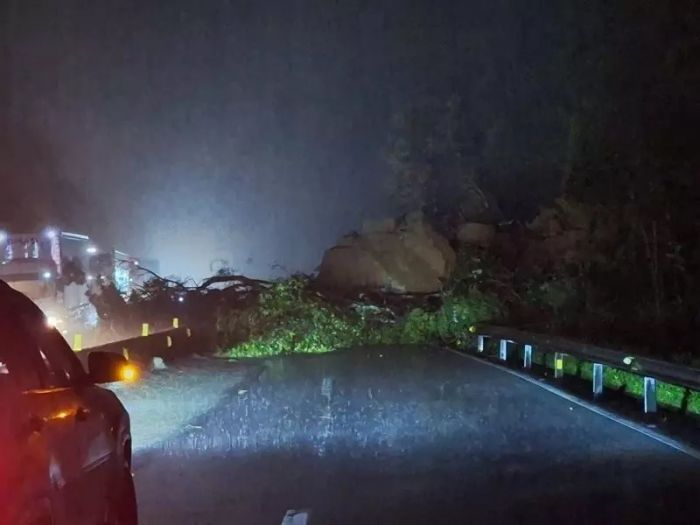 De acordo com a Arteris Litoral Sul, concessionária que administra a rodovia, foi feito bloqueio preventivo no Km 229 sentido Sul e no Km 234 sentido Norte por conta da queda de pedras e árvores na pista.