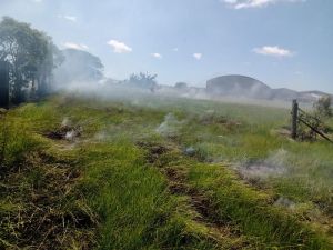 Ainda no sábado, por volta das 17h30, outro incêndio em vegetação foi registrado na Rua Grão-Pará, na localidade de Cascata Vermelha, no Balneário Arroio Corrente, em Jaguaruna. O fogo teve início em um terreno baldio, em meio a entulhos, próximo a residências. A equipe realizou o combate direto aos focos do incêndio, eliminando os riscos e garantindo a segurança da área.