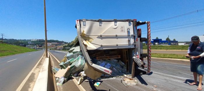 O tombamento de um caminhão na manhã desta quarta-feira (24) bloqueou uma das pistas da BR-480, em Chapecó, no Oeste de Santa Catarina. O acidente ocorreu por volta das 11h no acesso à cidade.