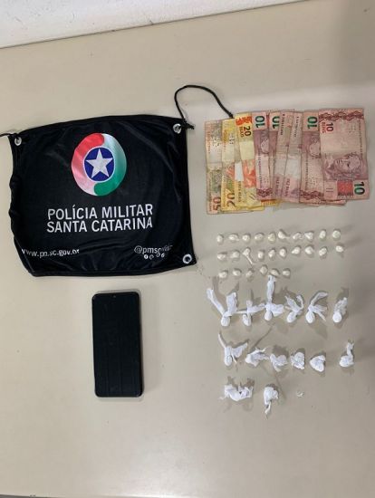 Em revista pessoal foram localizados R$ 200 em diversas notas, característica do tráfico, e um celular preto Samsung.