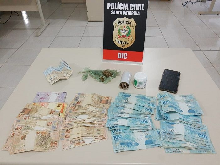 Durante as buscas, os policiais lograram êxito em encontrar certa quantidade de droga semelhante à maconha, uma substância utilizada para preparação de droga, embalagens de plástico para o acondicionamento dos entorpecentes e a quantia de R$ 6.320,00