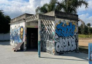 Quatro lixeiras da praça foram destruídas, e o lixo espalhado pelo local. O banheiro que fica próximo a pista de skate amanheceu com fezes espalhadas pelo chão.