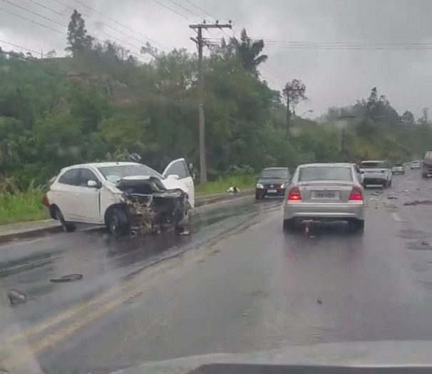 Uma colisão entre dois automóveis, um Fiat Uno e um Chevrolet Onix, foi registrada no início da tarde deste sábado (18), por volta das 12h45, na SC-370, próximo à entrada da comunidade do Azeiteiro, em Braço do Norte.