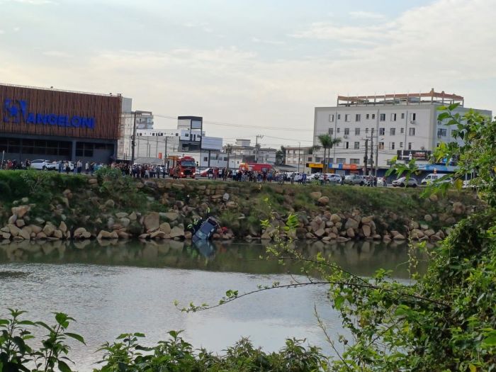 Na tarde desta quarta-feira, sete de agosto, por volta das 15:50h, um Toyota Corolla saiu da pista e caiu no rio Tubarão, ficando parcialmente submerso. O veículo, tripulado apenas pelo motorista, perdeu o controle na Rua Getúlio Vargas, fundos do Supermercado Angeloni, beira rio no bairro Humaitá.